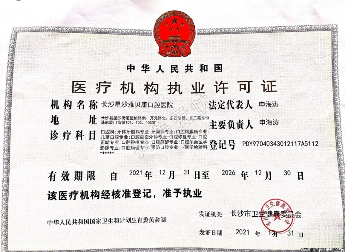機構(gòu)名稱:長沙星沙雅貝康口腔醫(yī)院