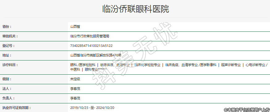 執(zhí)業(yè)許可證有效期:2019/10/23 -至- 2024/10/20