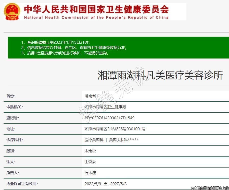 審批機關:湘潭市雨湖區(qū)衛(wèi)生健康局