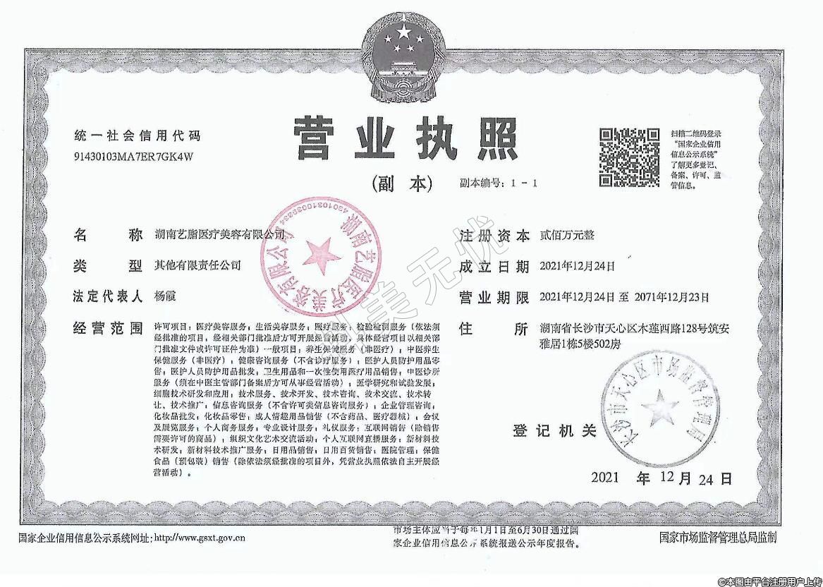 機構(gòu)名稱:長沙天心藝脂醫(yī)療美容門診部