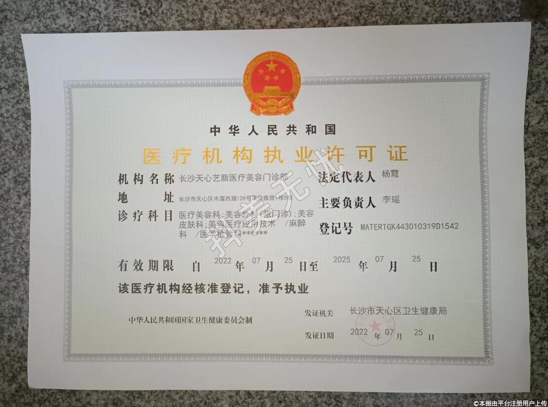 發(fā)證機關(guān):長沙市天心區(qū)衛(wèi)生健康局