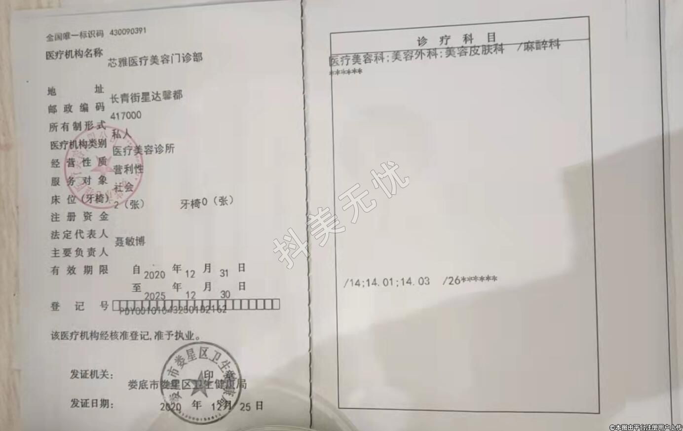 醫(yī)療機(jī)構(gòu)名稱:芯雅醫(yī)療美容門診部