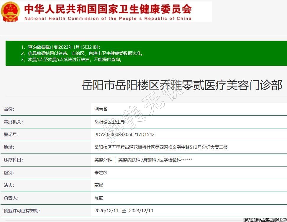 岳陽(yáng)市岳陽(yáng)樓區(qū)喬雅零貳醫(yī)療美容門診部