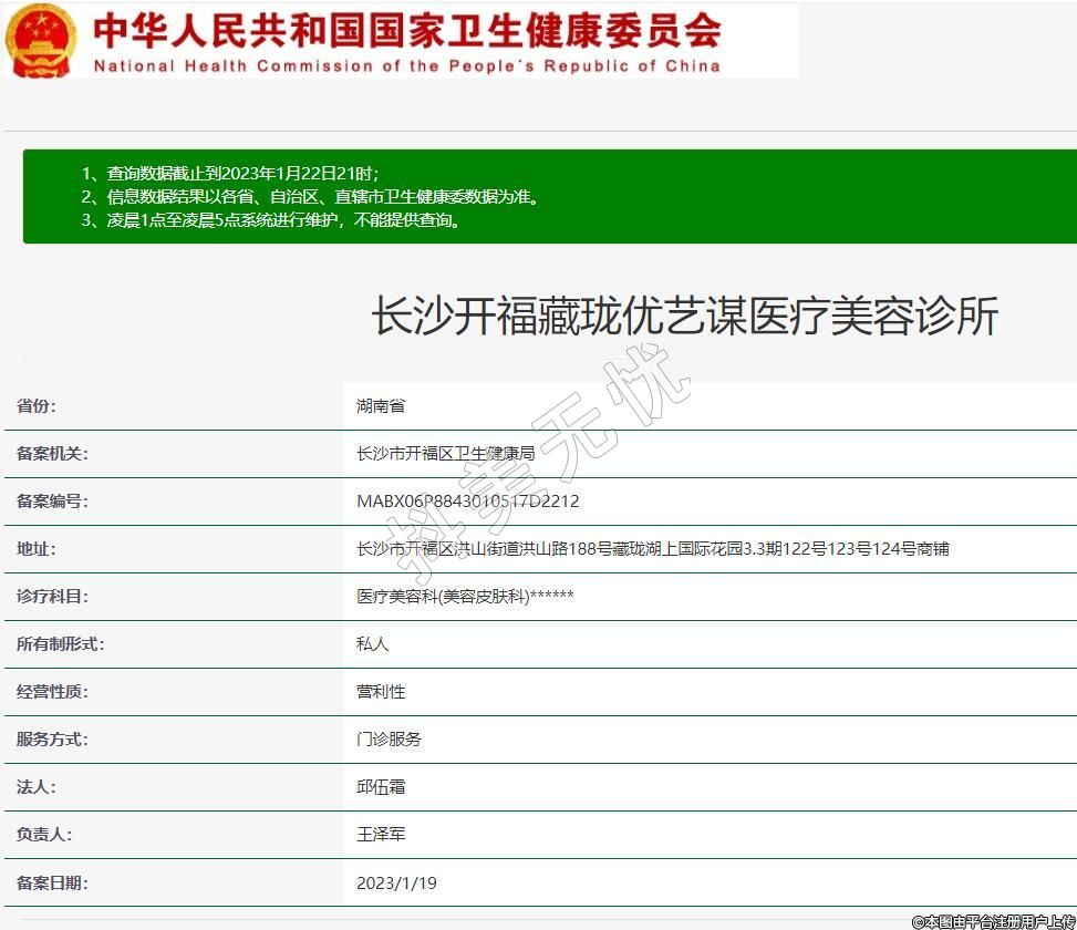 備案機(jī)關(guān):長(zhǎng)沙市開福區(qū)衛(wèi)生健康局
