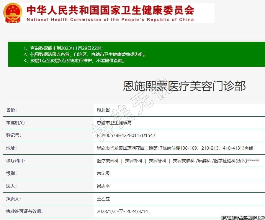恩施熙蒙醫(yī)療美容門診部,診療科目:醫(yī)療美容科 | 美容外科 | 美容牙科 | 美容皮膚科 /麻醉科 /醫(yī)學(xué)檢驗(yàn)科(協(xié)議)******