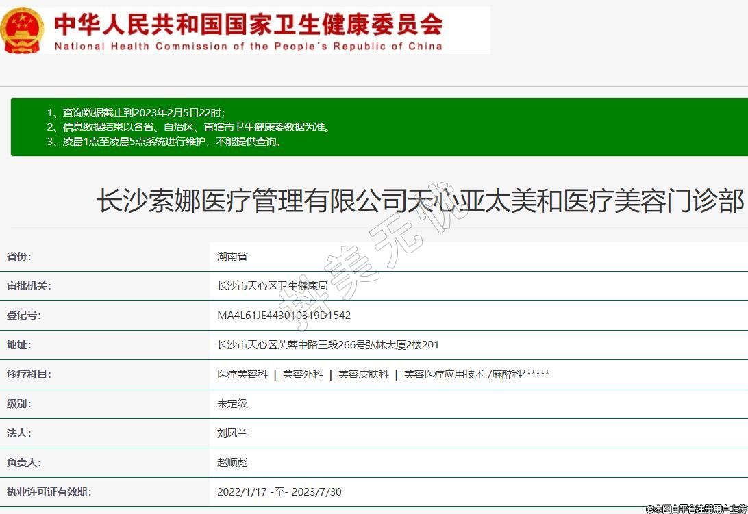 長沙索娜醫(yī)療管理有限公司天心亞太美和醫(yī)療美容門診部