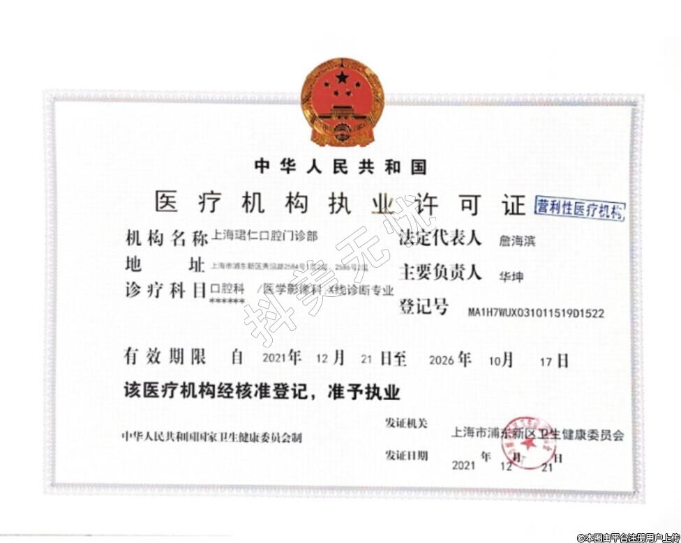 發(fā)證機(jī)關(guān):上海市浦東新區(qū)衛(wèi)生健康委員會