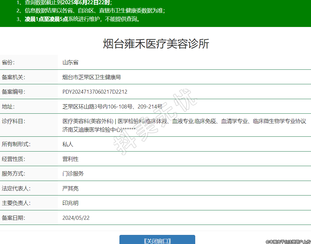 省份:山東省備案機關(guān):煙臺市芝罘區(qū)衛(wèi)生健康局備案編號:PDY20247137060217D2212地址:芝罘區(qū)環(huán)山路3號內(nèi)106-108號、209-214號診療科目:醫(yī)療美容科(美容外科) | 醫(yī)學(xué)檢驗科(臨床體液、血液專業(yè),臨床免疫、血清學(xué)專業(yè)、臨床微生物學(xué)專業(yè)協(xié)議濟南艾迪康醫(yī)學(xué)檢驗中心)******所有制形式:私人經(jīng)營性質(zhì):營利性服務(wù)方式:門診服務(wù)法定代表人:嚴(yán)其亮主要負責(zé)人:印兆明備案日期:2024/05/22 -