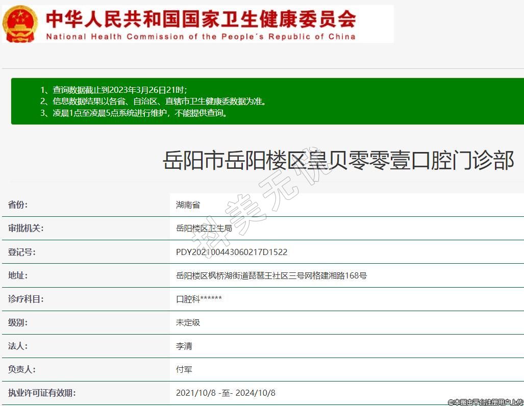 岳陽市岳陽樓區(qū)皇貝零零壹口腔門診部