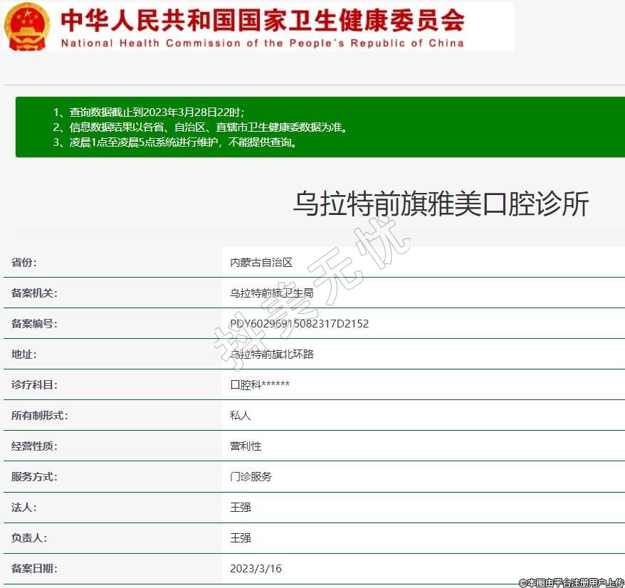 烏拉特前旗雅美口腔診療科目:口腔科******
