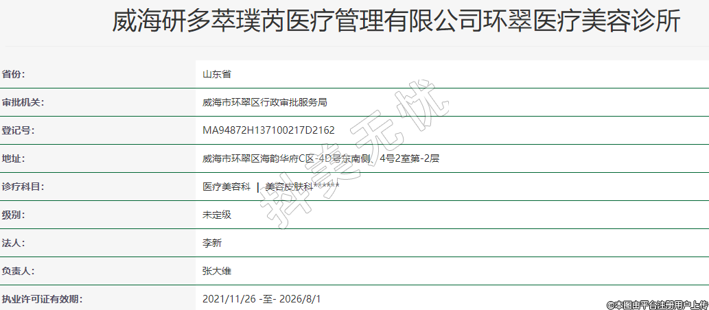 威海研多萃璞芮醫(yī)療管理有限公司環(huán)翠醫(yī)療美容診所