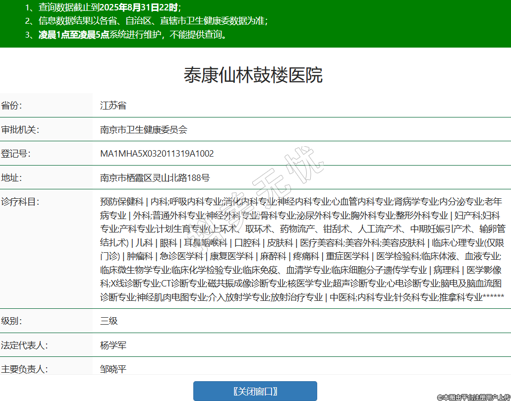 省份:江蘇省審批機(jī)關(guān):南京市衛(wèi)生健康委員會(huì)登記號(hào):MA1MHA5X032011319A1002地址:南京市棲霞區(qū)靈山北路188號(hào)診療科目:預(yù)防保健科 | 內(nèi)科;呼吸內(nèi)科專(zhuān)業(yè);消化內(nèi)科專(zhuān)業(yè);神經(jīng)內(nèi)科專(zhuān)業(yè);心血管內(nèi)科專(zhuān)業(yè);腎病學(xué)專(zhuān)業(yè);內(nèi)分泌專(zhuān)業(yè);老年病專(zhuān)業(yè) | 外科;普通外科專(zhuān)業(yè);神經(jīng)外科專(zhuān)業(yè);骨科專(zhuān)業(yè);泌尿外科專(zhuān)業(yè);胸外科專(zhuān)業(yè);整形外科專(zhuān)業(yè) | 婦產(chǎn)科;婦科專(zhuān)業(yè);產(chǎn)科專(zhuān)業(yè);計(jì)劃生育專(zhuān)業(yè)(上環(huán)術(shù)、取環(huán)術(shù)、藥物流產(chǎn)、鉗刮術(shù)、人工流產(chǎn)術(shù)、中期妊娠引產(chǎn)術(shù)、輸卵管結(jié)扎術(shù)) | 兒科 | 眼科 | 耳鼻咽喉科 | 口腔科 | 皮膚科 | 醫(yī)療美容科;美容外科;美容皮膚科 | 臨床心理專(zhuān)業(yè)(僅限門(mén)診) | 腫瘤科 | 急診醫(yī)學(xué)科 | 康復(fù)醫(yī)學(xué)科 | 麻醉科 | 疼痛科 | 重癥醫(yī)學(xué)科 | 醫(yī)學(xué)檢驗(yàn)科;臨床體液、血液專(zhuān)業(yè);臨床微生物學(xué)專(zhuān)業(yè);臨床化學(xué)檢驗(yàn)專(zhuān)業(yè);臨床免疫、血清學(xué)專(zhuān)業(yè);臨床細(xì)胞分子遺傳學(xué)專(zhuān)業(yè) | 病理科 | 醫(yī)學(xué)影像科;X線診斷專(zhuān)業(yè);CT診斷專(zhuān)業(yè);磁共振成像診斷專(zhuān)業(yè);核醫(yī)學(xué)專(zhuān)業(yè);超聲診斷專(zhuān)業(yè);心電診斷專(zhuān)業(yè);腦電及腦血流圖診斷專(zhuān)業(yè);神經(jīng)肌肉電圖專(zhuān)業(yè);介入放射學(xué)專(zhuān)業(yè);放射治療專(zhuān)業(yè) | 中醫(yī)科;內(nèi)科專(zhuān)業(yè);針灸科專(zhuān)業(yè);推拿科專(zhuān)業(yè)******級(jí)別:三級(jí)法定代表人:楊學(xué)軍主要負(fù)責(zé)人:鄒曉平執(zhí)業(yè)許可證有效期:2025/04/28 -至- 2037/04/09 -