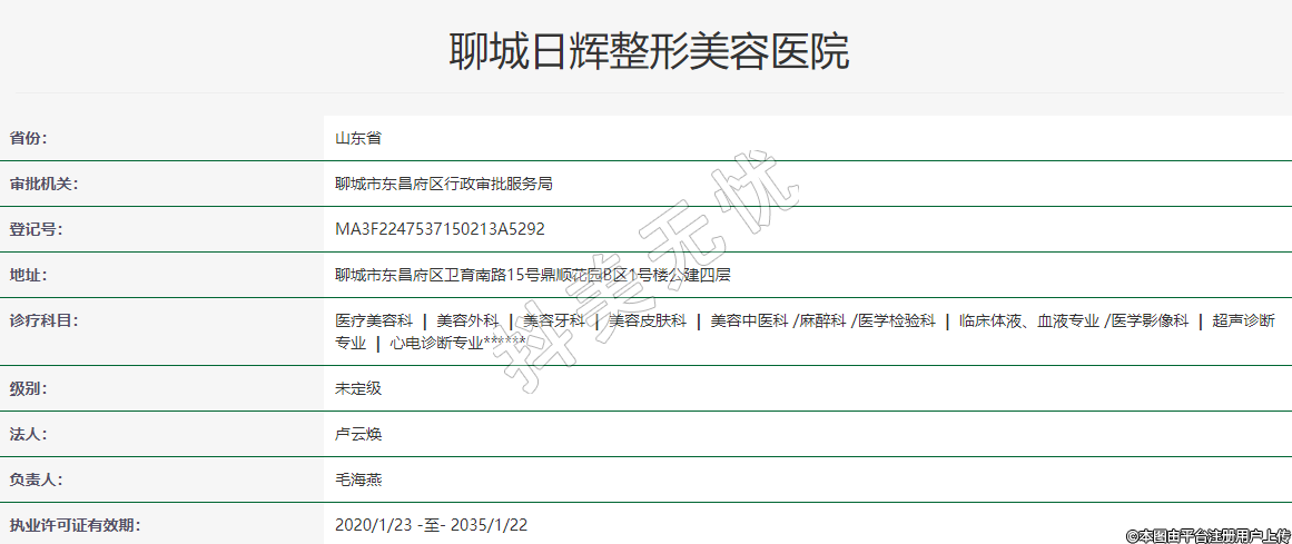 執(zhí)業(yè)許可證有效期:2020/1/23 -至- 2035/1/22