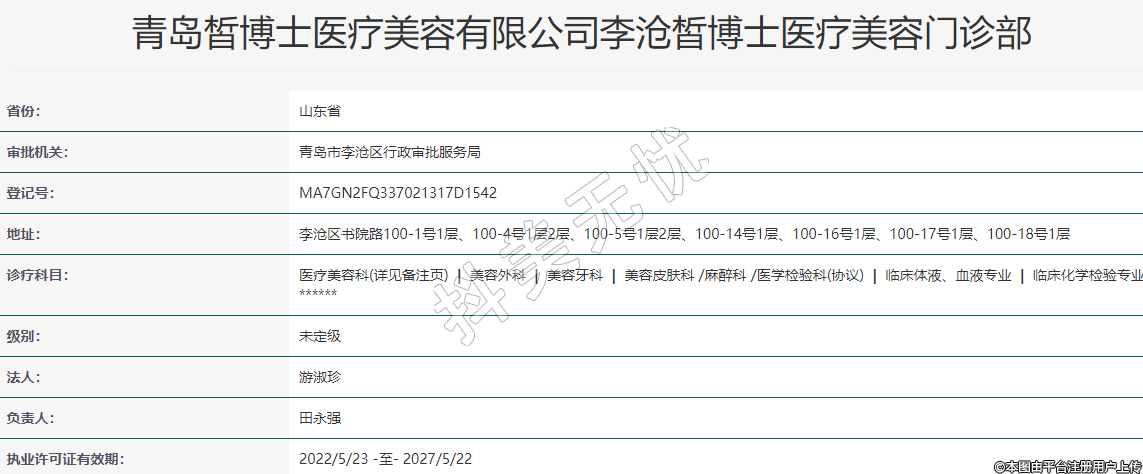 青島皙博士醫(yī)療美容有限公司李滄皙博士醫(yī)療美容門診部