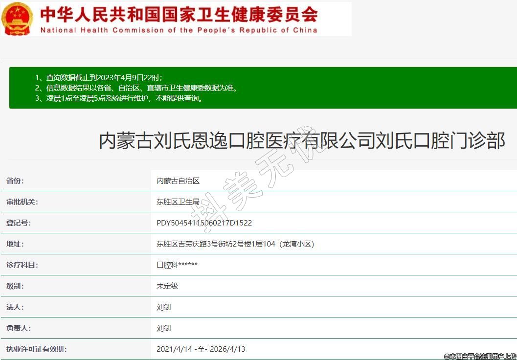 內(nèi)蒙古劉氏恩逸口腔醫(yī)療有限公司劉氏口腔門診部