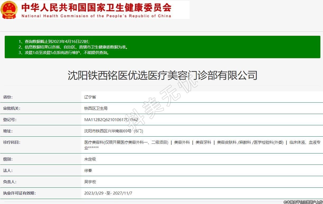 沈陽鐵西銘醫(yī)優(yōu)選醫(yī)療美容門診部有限公司
