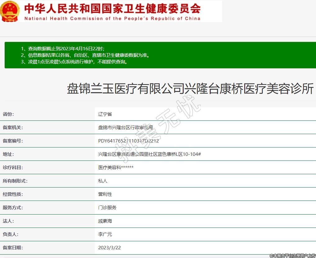 盤錦蘭玉醫(yī)療有限公司興隆臺(tái)康橋醫(yī)療美容診所