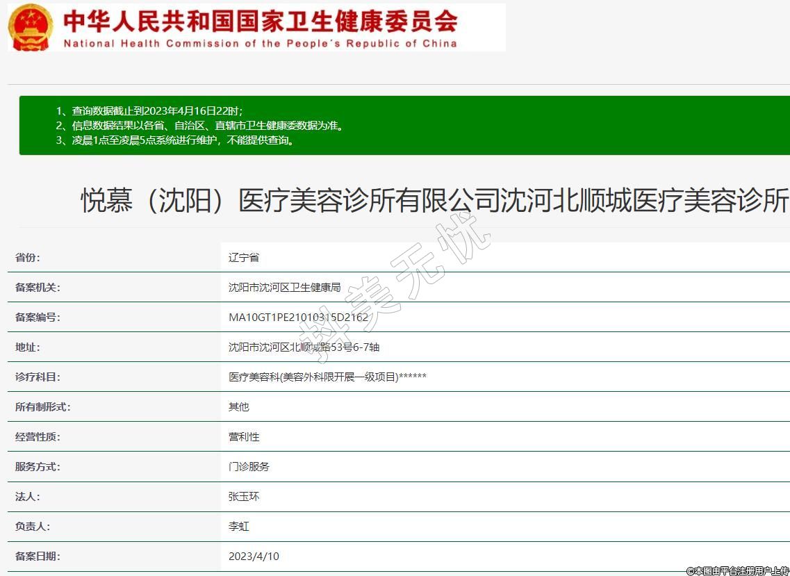 悅慕(沈陽)醫(yī)療美容診所有限公司沈河北順城醫(yī)療美容診所