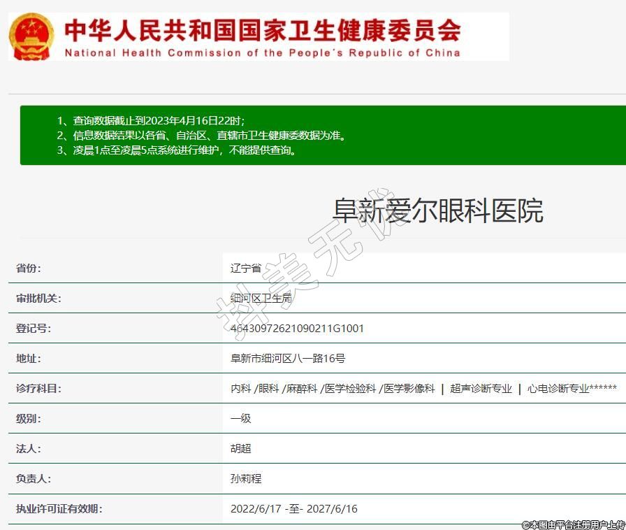 阜新愛爾眼科醫(yī)院,診療科目:內(nèi)科 /眼科 /麻醉科 /醫(yī)學(xué)檢驗科 /醫(yī)學(xué)影像科 | 超聲診斷專業(yè) | 心電診斷專業(yè)******