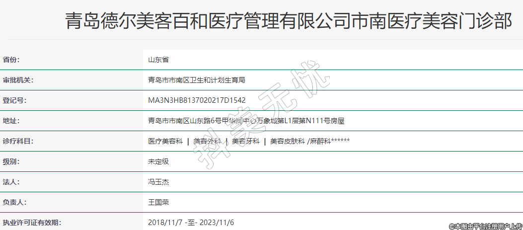 青島德爾美客百和醫(yī)療管理有限公司市南醫(yī)療美容門診部