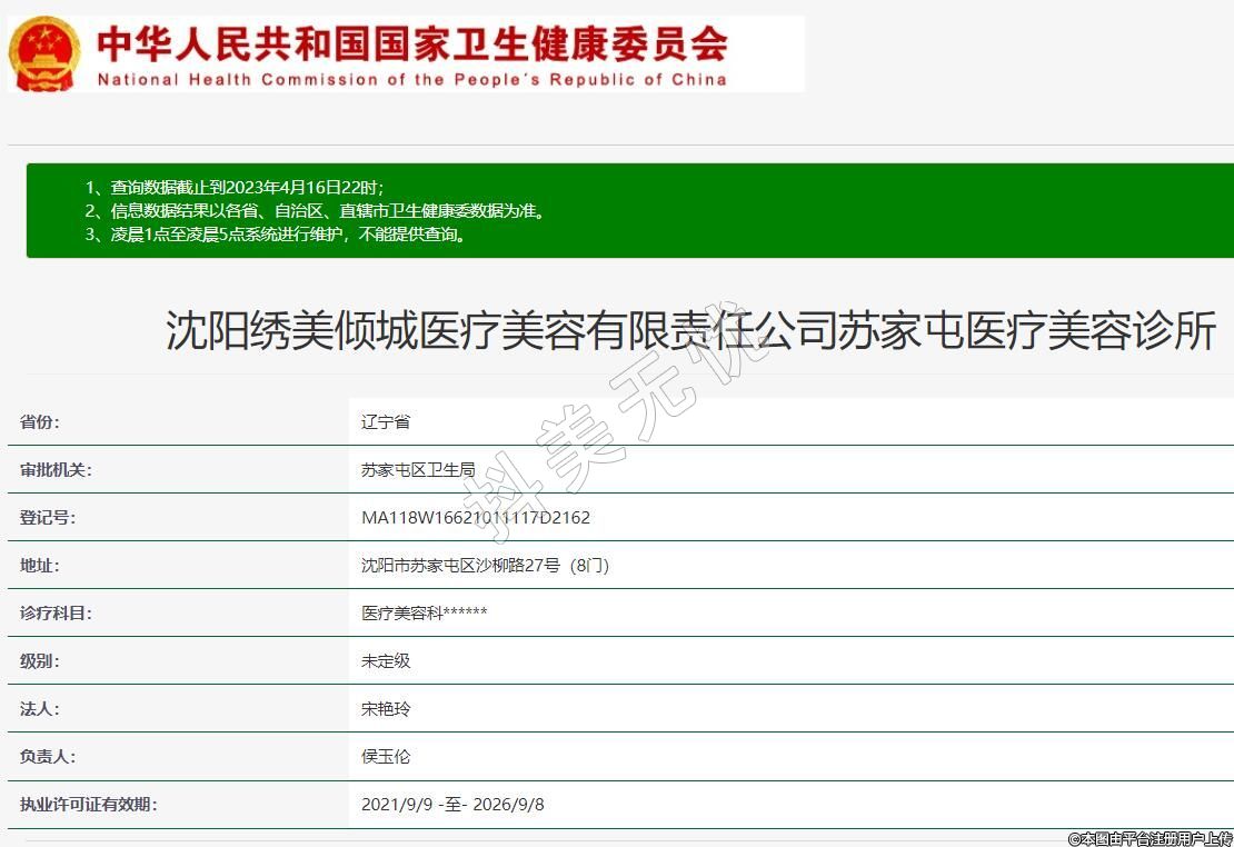 沈陽繡美傾城醫(yī)療美容有限責任公司蘇家屯醫(yī)療美容診所
