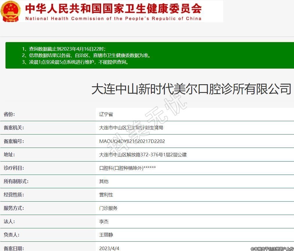 備案機關(guān):大連市中山區(qū)衛(wèi)生和計劃生育局