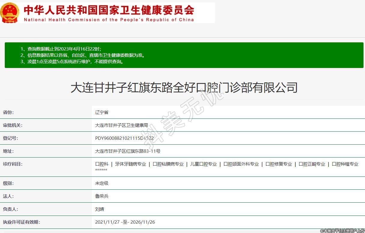 大連甘井子紅旗東路全好口腔門診部有限公司