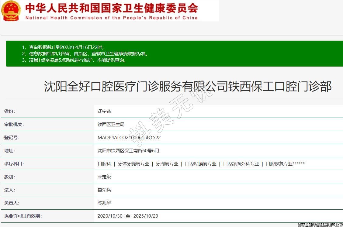 沈陽全好口腔醫(yī)療門診服務有限公司鐵西保工口腔門診部