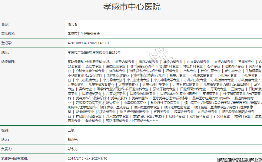 執(zhí)業(yè)許可證有效期:2014/8/15 -至- 2023/3/10