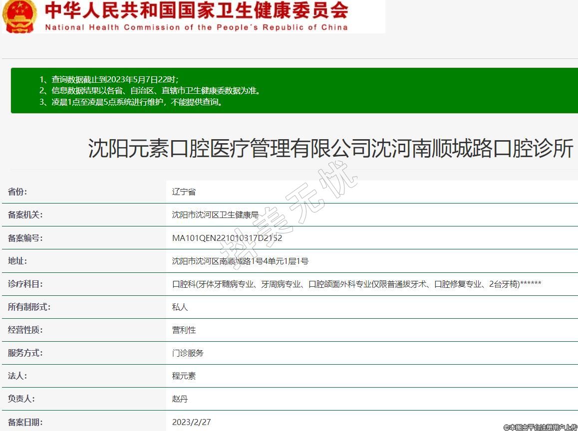 沈陽元素口腔醫(yī)療管理有限公司沈河南順城路口腔診所
