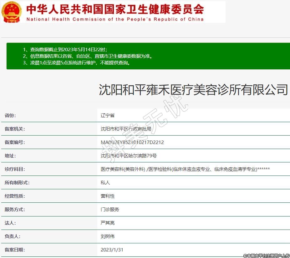 沈陽和平雍禾醫(yī)療美容診所有限公司