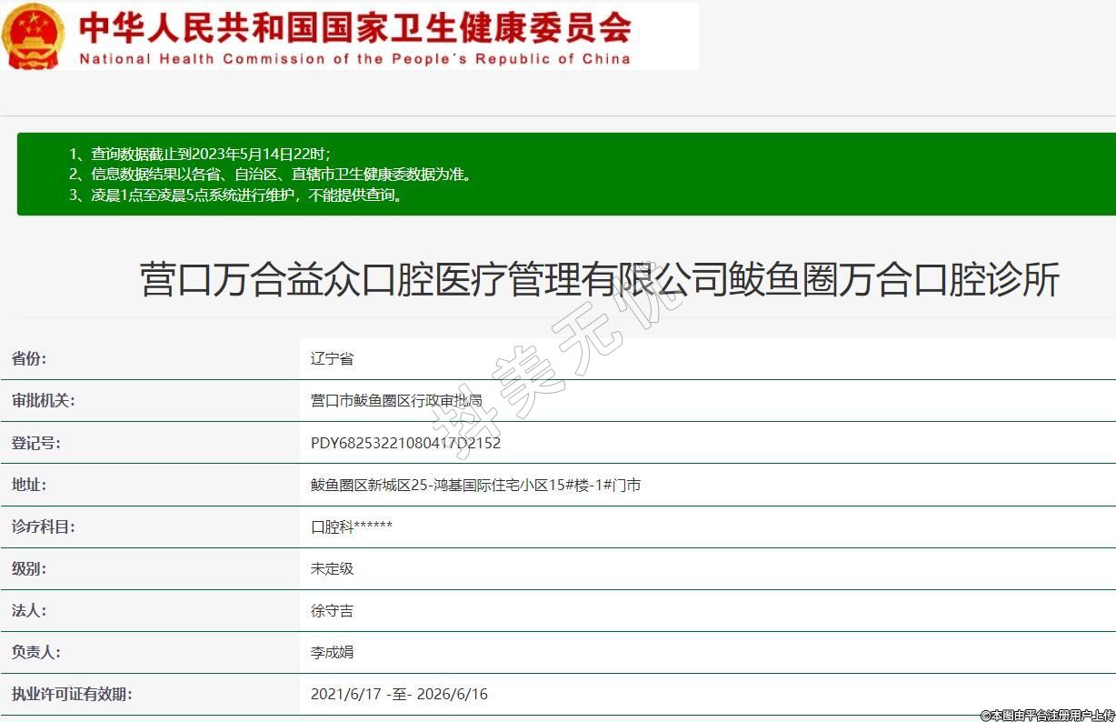 營(yíng)口萬(wàn)合益眾口腔醫(yī)療管理有限公司鲅魚(yú)圈萬(wàn)合口腔診所