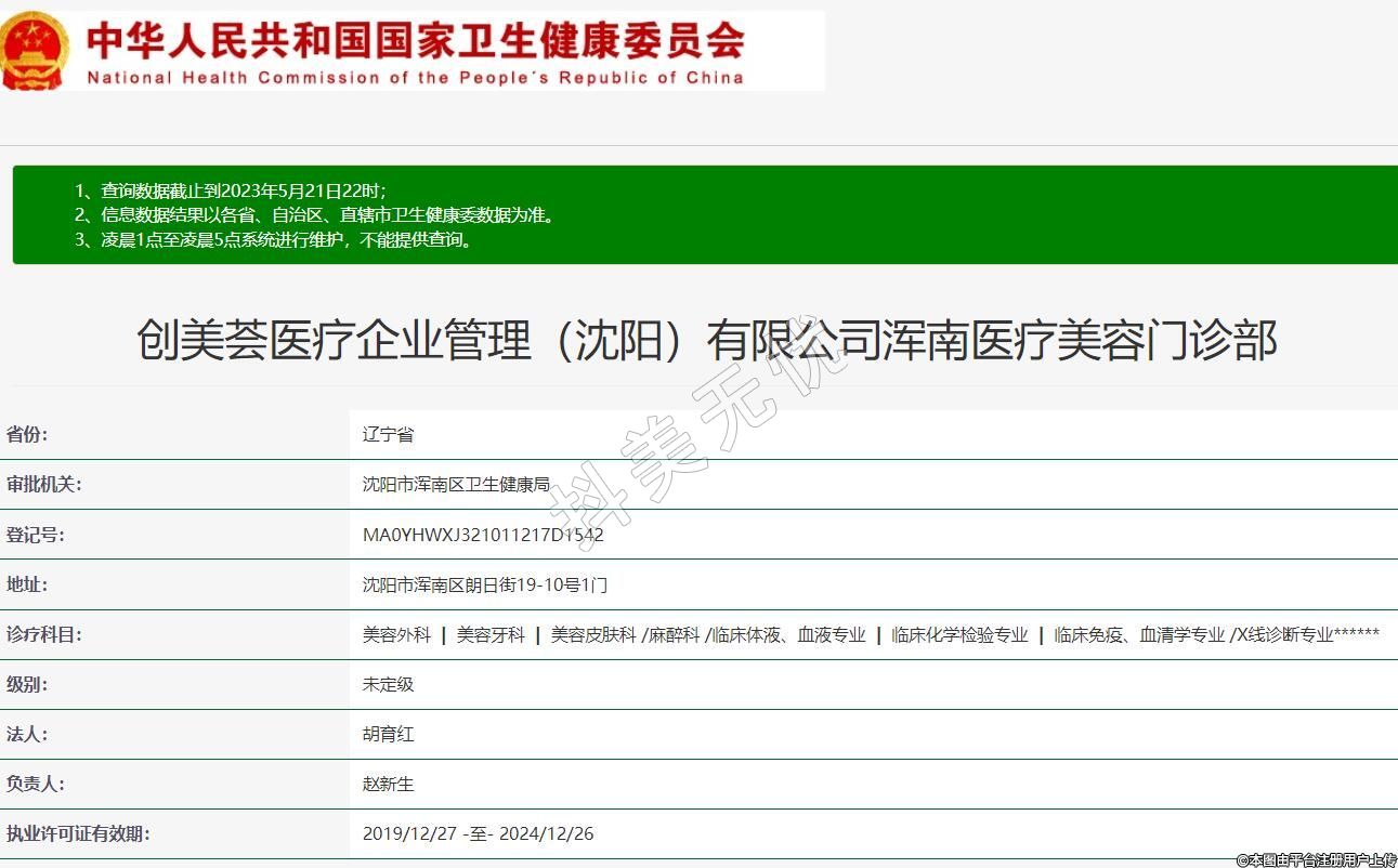 創(chuàng)美薈醫(yī)療企業(yè)管理(沈陽(yáng))有限公司渾南醫(yī)療美容門診部