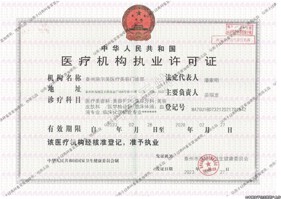 發(fā)證機(jī)關(guān):泰州市海陵區(qū)衛(wèi)生健康委員會