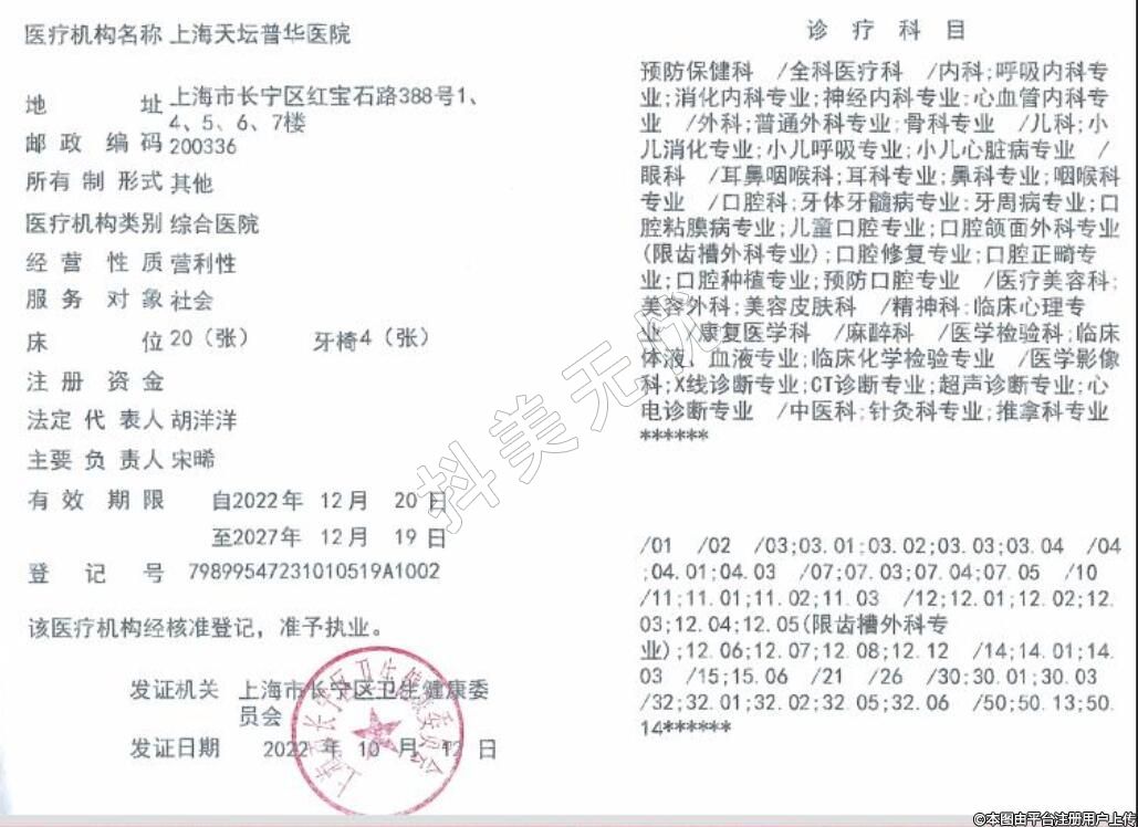 醫(yī)療機(jī)構(gòu)名稱:上海天壇普華醫(yī)院