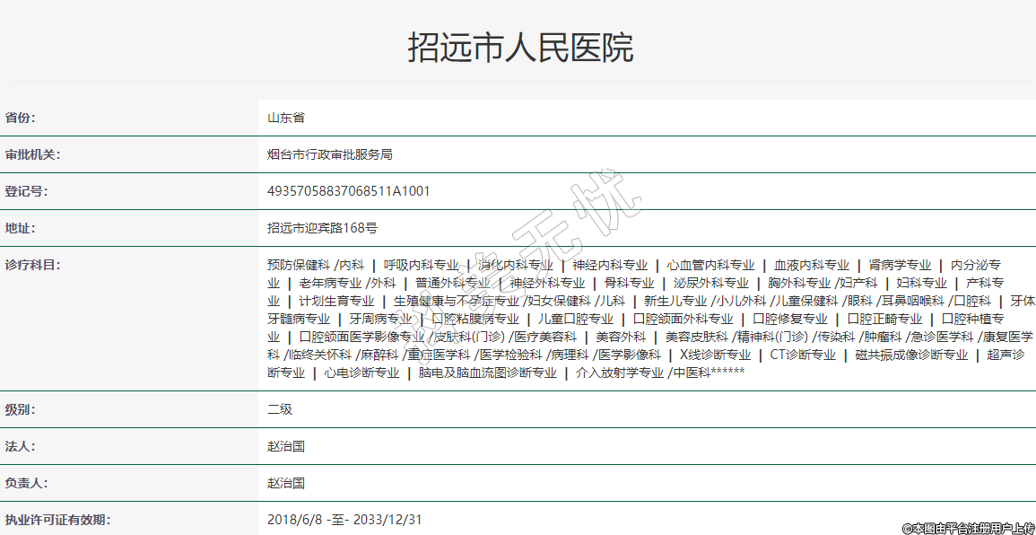 執(zhí)業(yè)許可證有效期:2018/6/8 -至- 2033/12/31