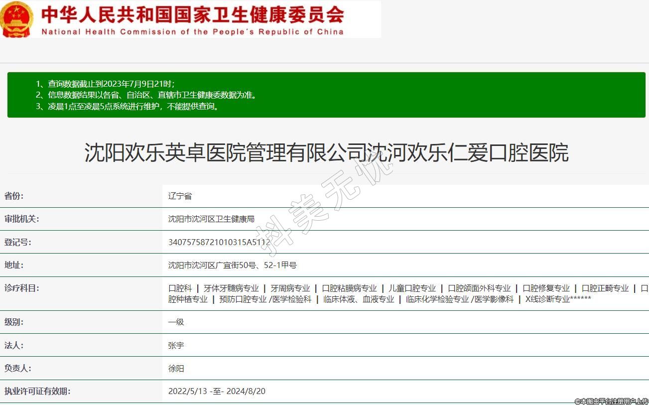 沈陽(yáng)歡樂(lè)英卓醫(yī)院管理有限公司沈河歡樂(lè)仁愛(ài)口腔醫(yī)院