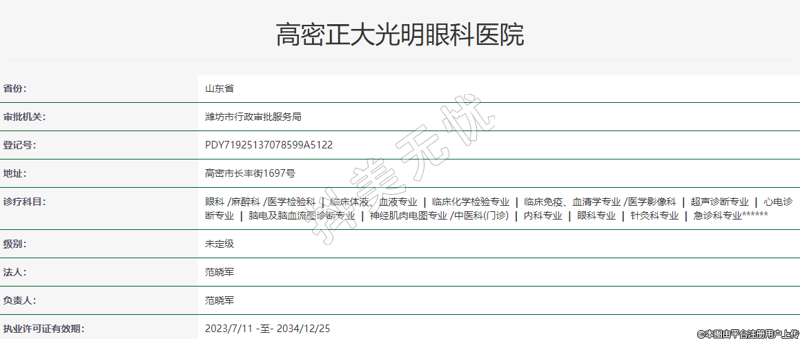 執(zhí)業(yè)許可證有效期:2023/7/11 -至- 2034/12/25