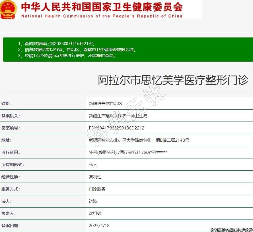 阿拉爾思憶美學醫(yī)療整形診療科目:外科(整形外科) /醫(yī)療美容科 /麻醉科******