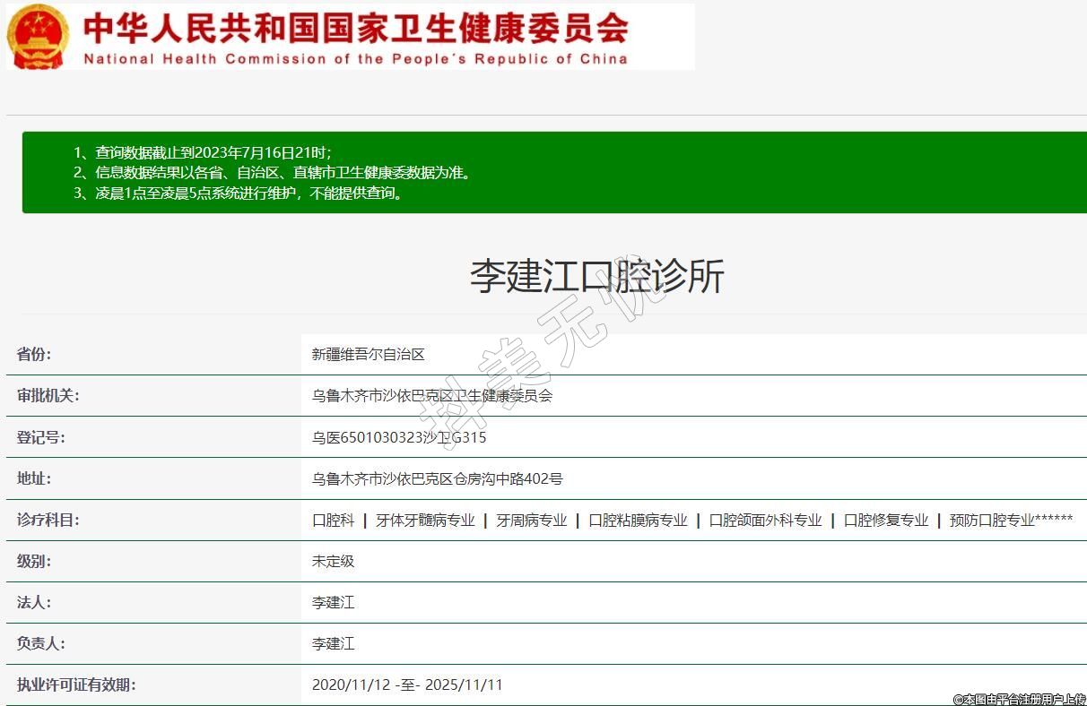 烏魯木齊李建江口腔,診療科目:口腔科 | 牙體牙髓病專業(yè) | 牙周病專業(yè) | 口腔粘膜病專業(yè) | 口腔頜面外科專業(yè) | 口腔修復專業(yè) | 預防口腔專業(yè)******
