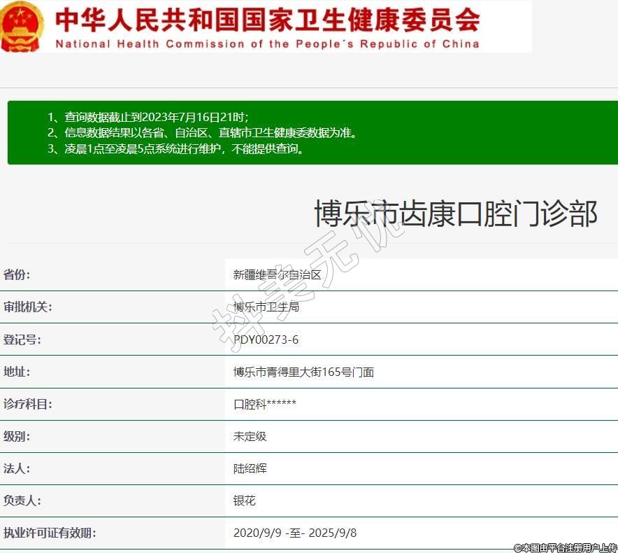 博樂市齒康口腔門診部,診療科目:口腔科******