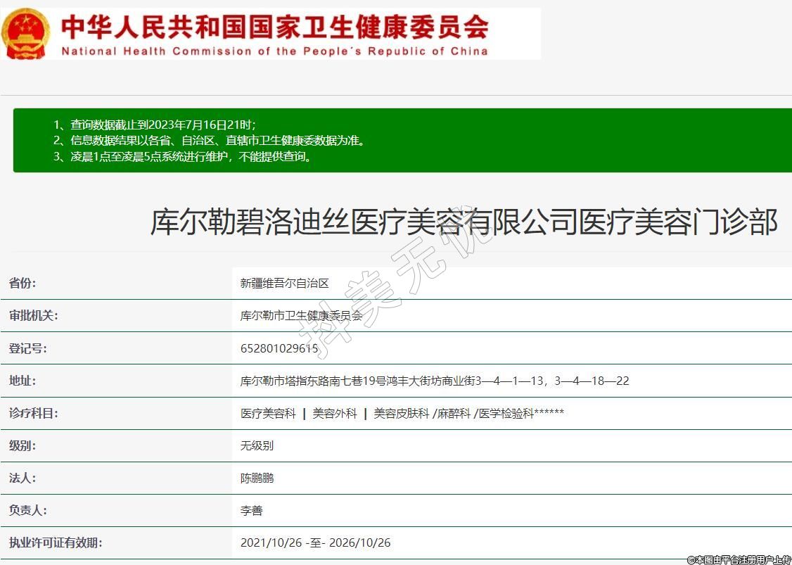 庫爾勒碧洛迪絲醫(yī)療美容有限公司醫(yī)療美容門診部
