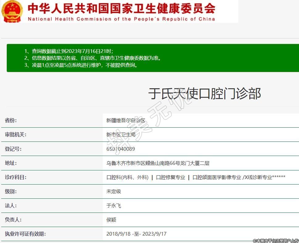 烏魯木齊于氏天使口腔(鯉魚山南路)診療科目:口腔科(內科、外科) | 口腔修復專業(yè) | 口腔頜面醫(yī)學影像專業(yè) /X線診斷專業(yè)******