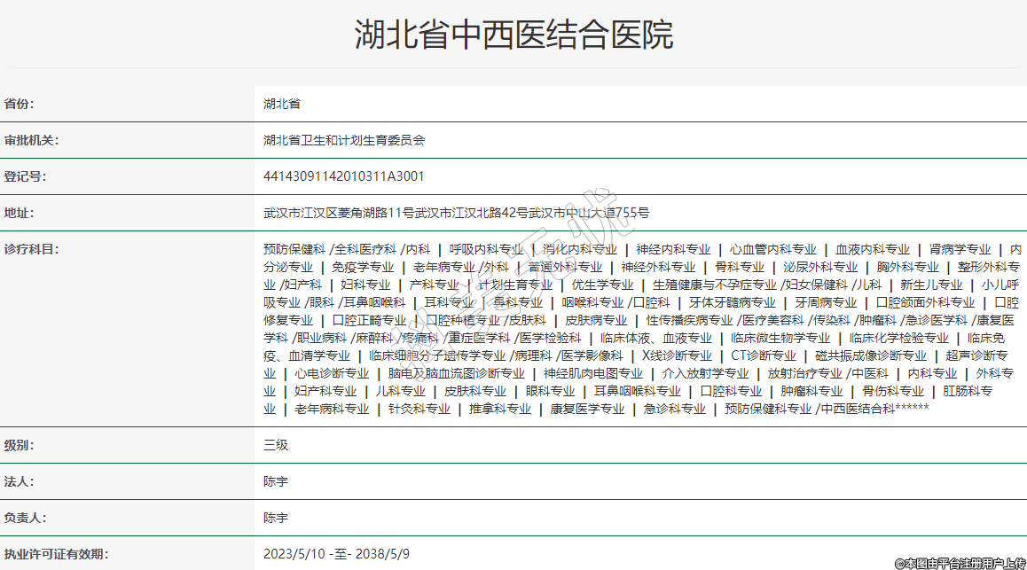 執(zhí)業(yè)許可證有效期:2023/5/10 -至- 2038/5/9