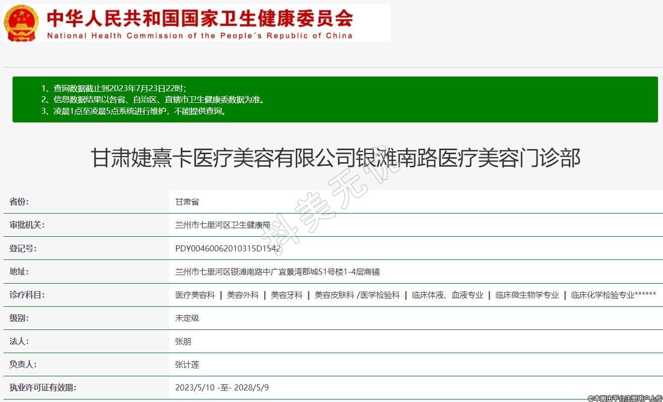 甘肅婕熹卡醫(yī)療美容有限公司銀灘南路醫(yī)療美容門(mén)診部