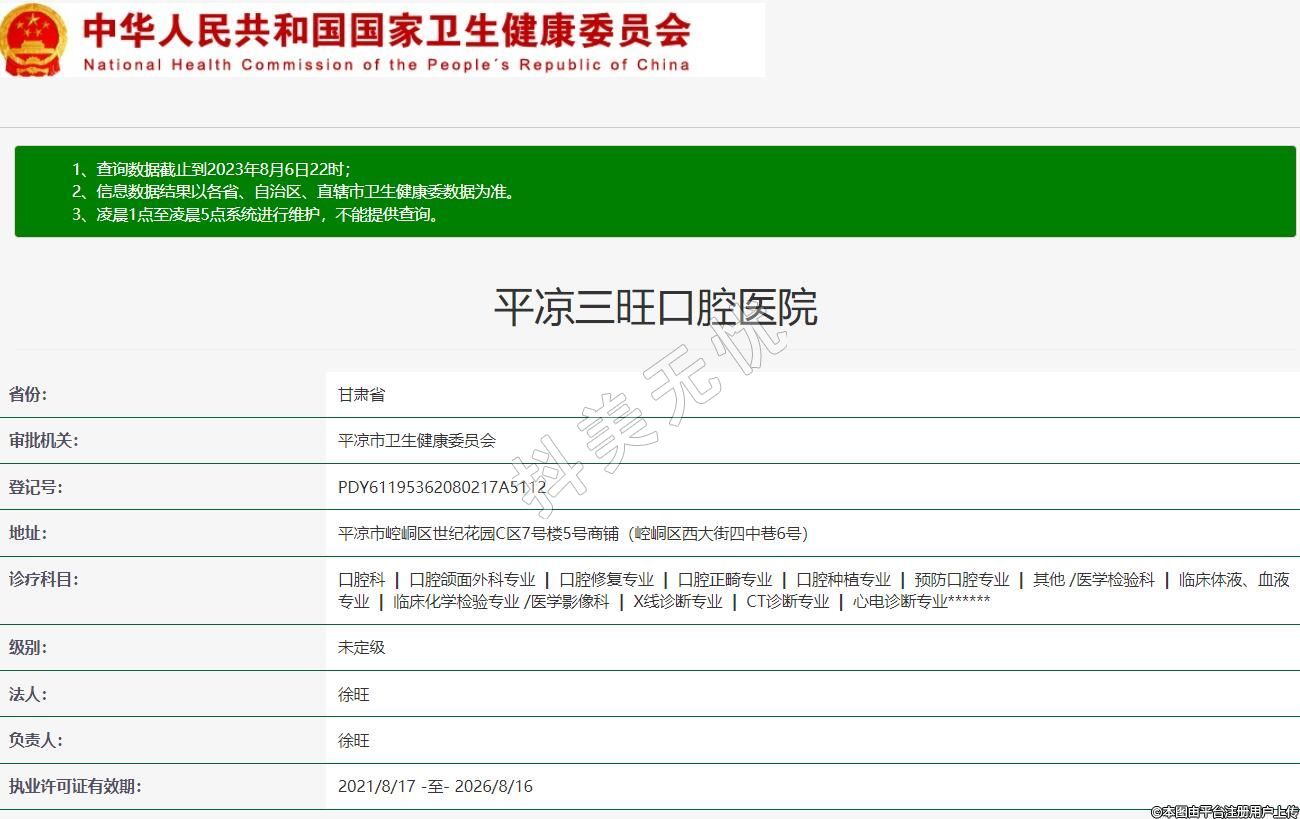 審批機關:平?jīng)鍪行l(wèi)生健康委員會