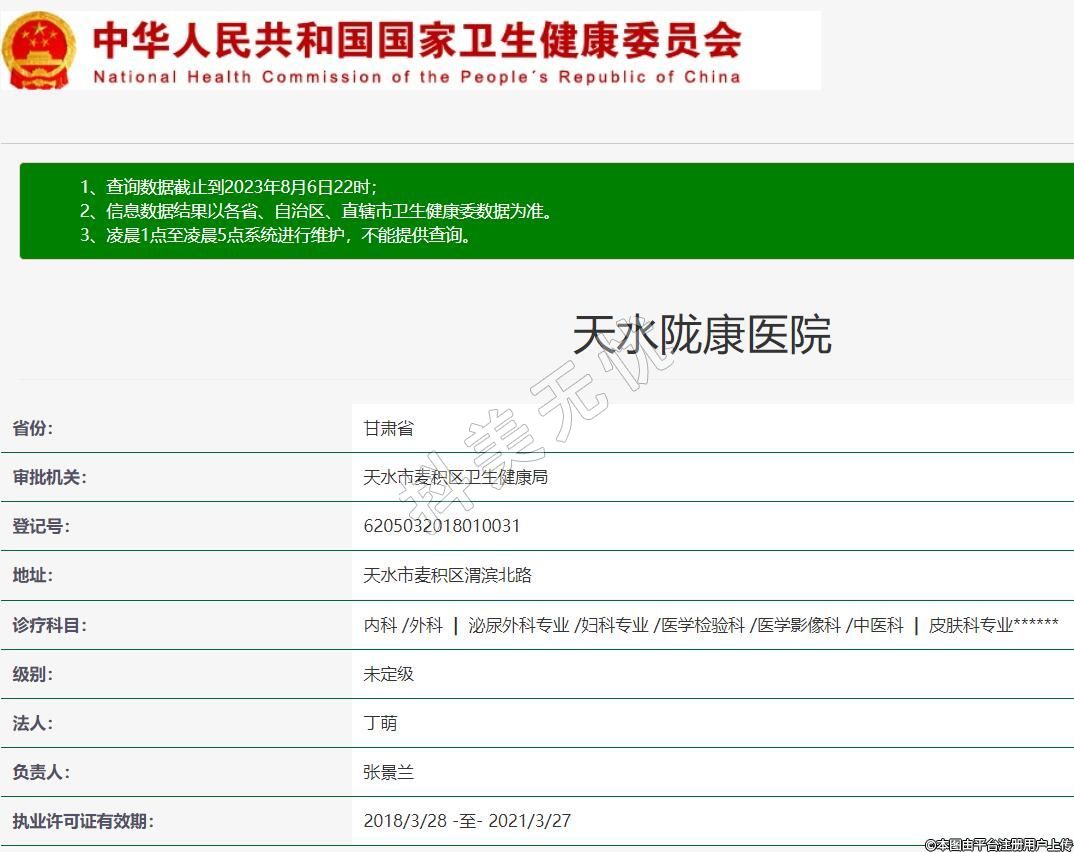 審批機關(guān):天水市麥積區(qū)衛(wèi)生健康局