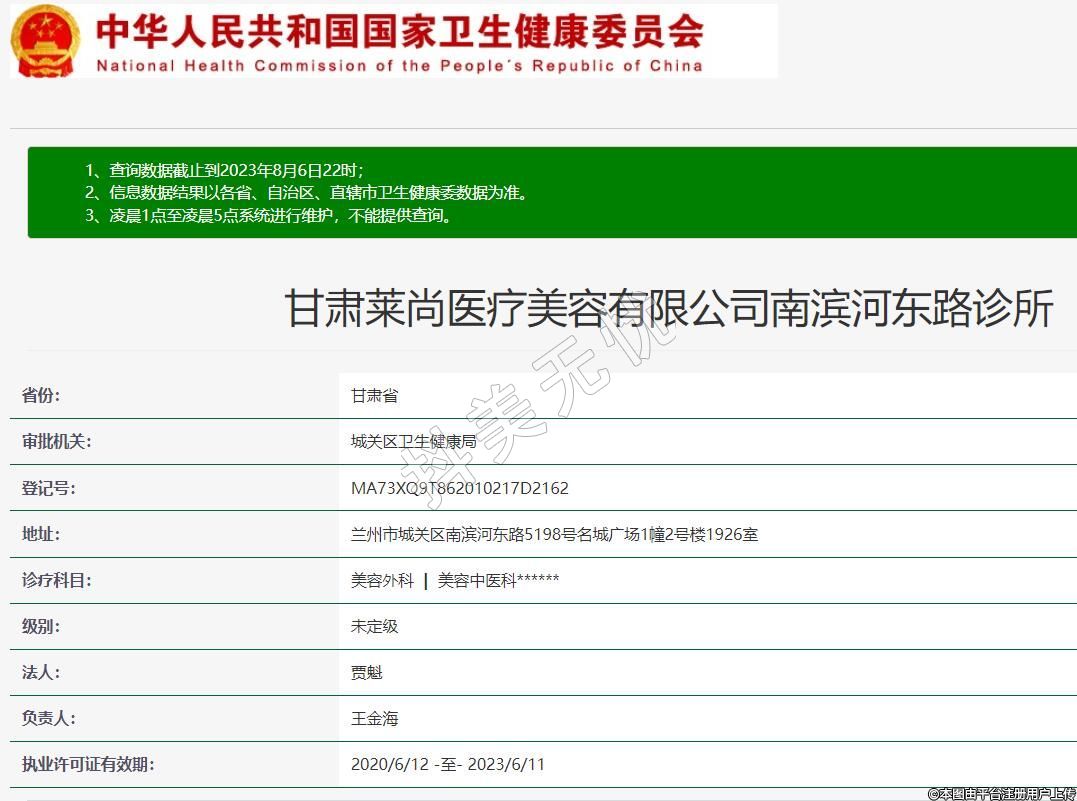 甘肅萊尚醫(yī)療美容有限公司南濱河?xùn)|路診所