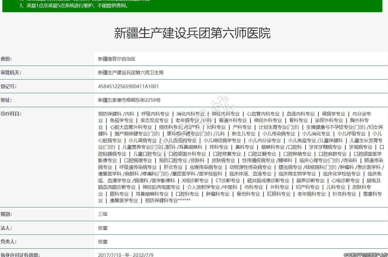審批機關(guān):新疆生產(chǎn)建設(shè)兵團第六師衛(wèi)生局