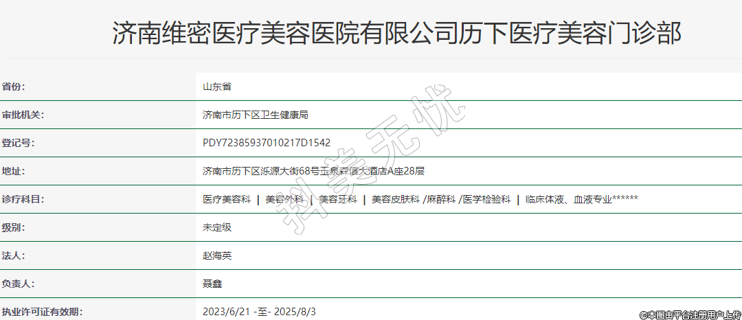 濟南維密醫(yī)療美容醫(yī)院有限公司歷下醫(yī)療美容門診部